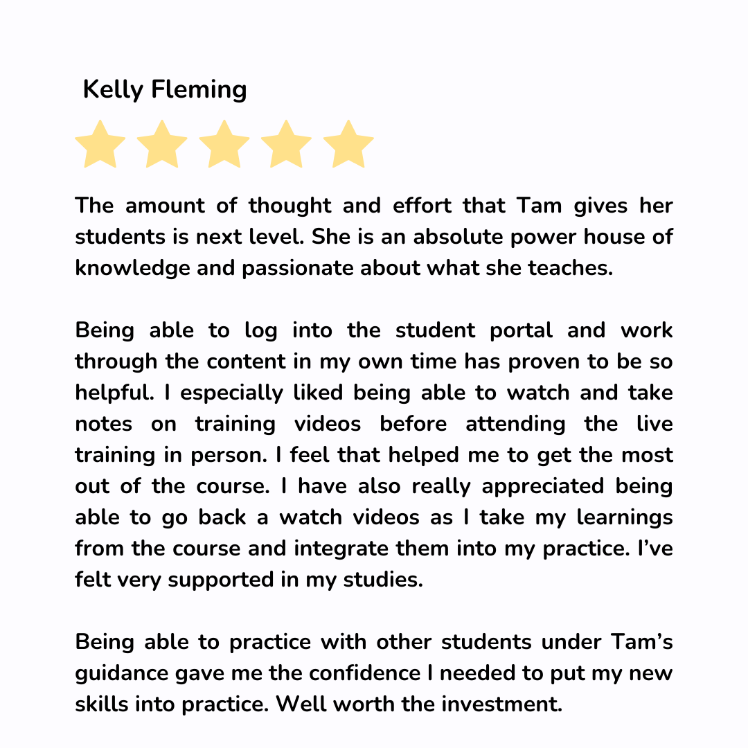 Clear, easy-to-use reference guides for each modality to anchor your learning and support your sessions.